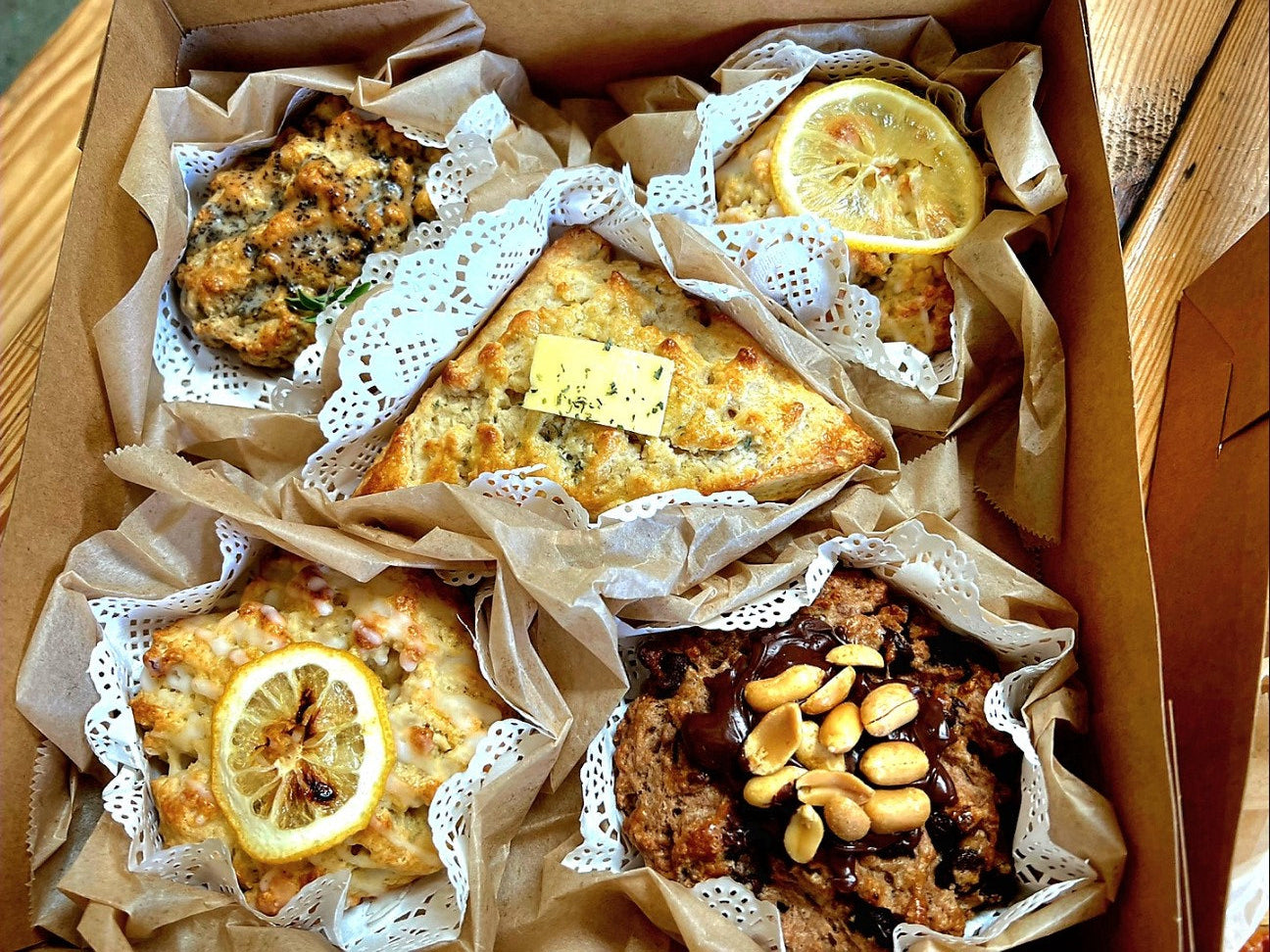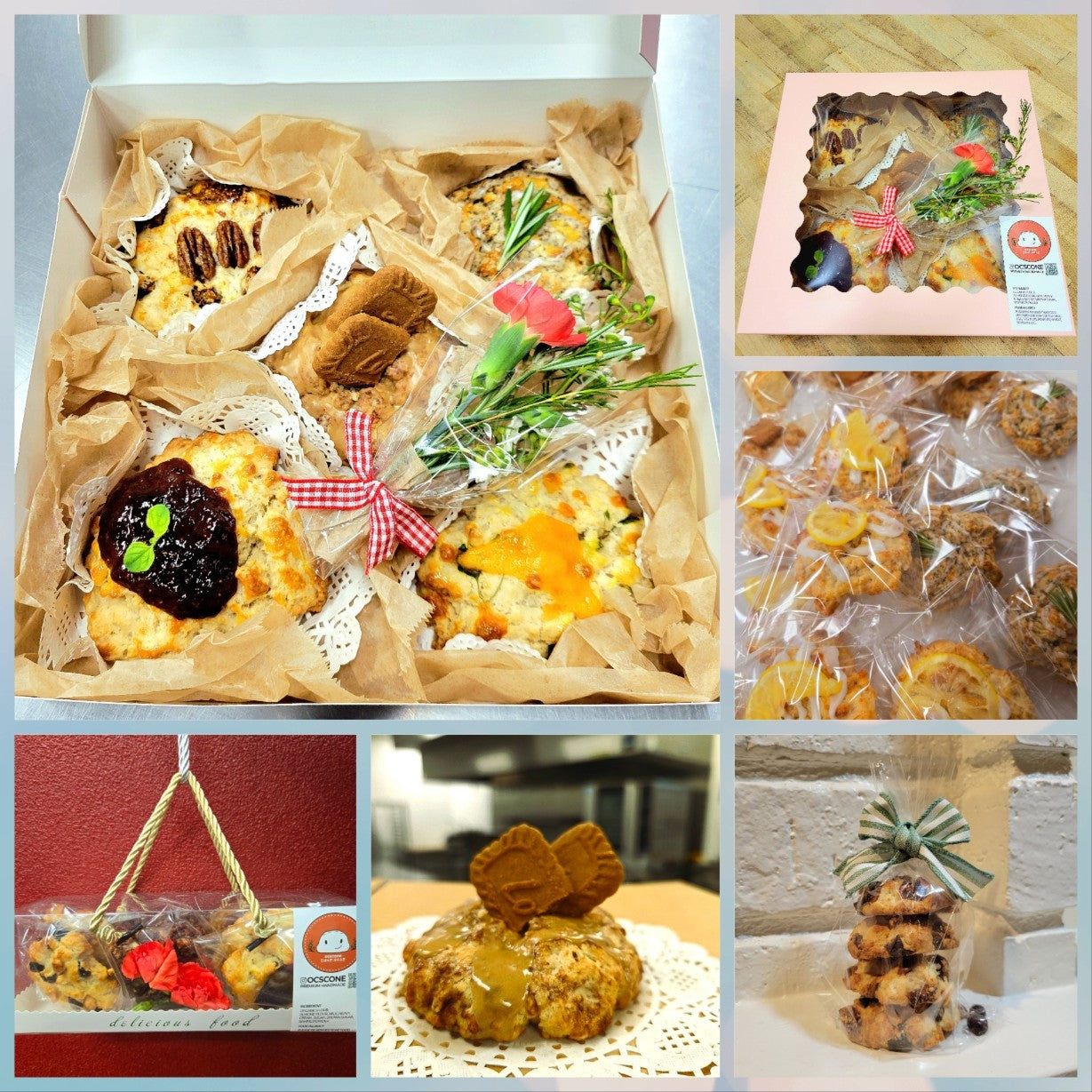 🍃 Earl Grey Scone, 🍫 Chocolate Walnut Scone, ♥️ Fig & Pecan Scone, 🧈 Original Butter Scone, 🎄 and the Christmas Special Scone!